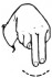 На ћирилици написано ЊЕГОСЛАВ ДАНЦЕР састоји се из 14 слова [?]. Исписано ћириличном једноручном азбуком за глувонеме: